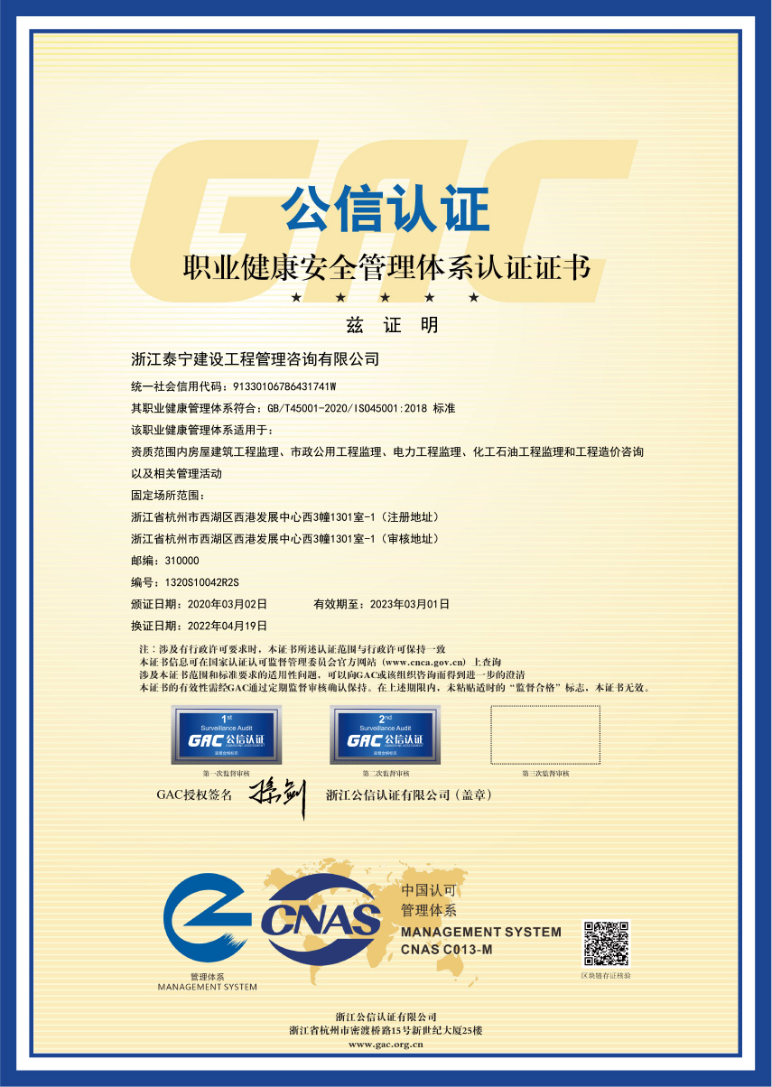 職業(yè)健康安全管理體系認(rèn)證證書