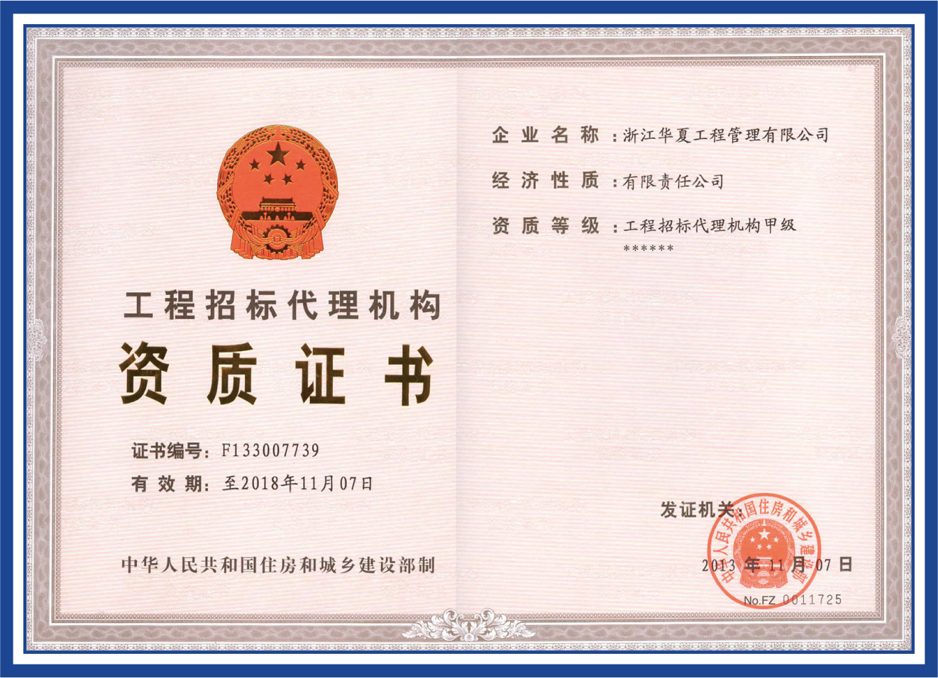 工程招標(biāo)代理機(jī)構(gòu)資質(zhì)證書